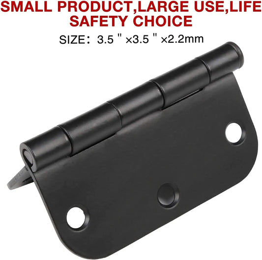 6 Pack Matte Black Interior Door Hinges Round 3.5" x 3.5 Inch 5/8" Radius Heavy-Duty Mat Hinge for Doors Standard Bedroom Work Office Door Hardware Removable Pin,Farm,Shed,Gate,Greenhouse Vent Window