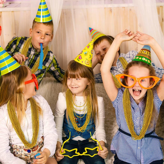 Gold Bead Necklace, 24PCS Christmas Bead Necklaces Stuff, 33" Mardi Gras Xmas Beaded Necklace Costume, Festival Parade Throw Accessories for Wedding Birthday Pirate Party Baby Shower Supplies Decor