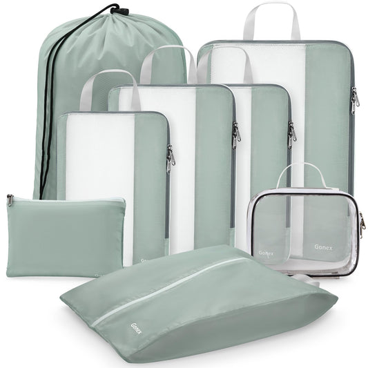 Gonex 8 Set Compression Packing Cubes for Travel Essentials, Expandable Mesh Organizer with Toiletry, Laundry, Shoe, Cable Bags for Suitcases, Gray