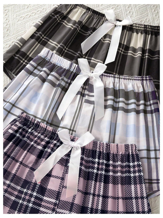 GORGLITTER Women's 3 Piece Plaid Pajama Shorts Elastic Waist Cute Pj Sleep Lounge Shorts Black White Pink Small