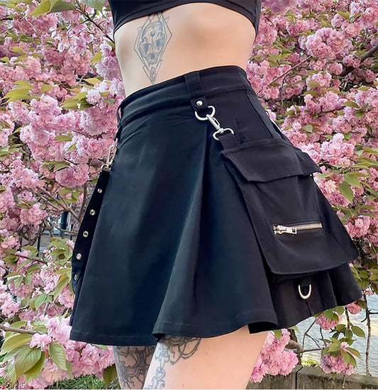 Gothic Dresses for Women Steampunk Grunge Emo Fairycore Vintage Renaissance Witch Black Mini Dress Rave Outfits Clothes, Cargo Black, S