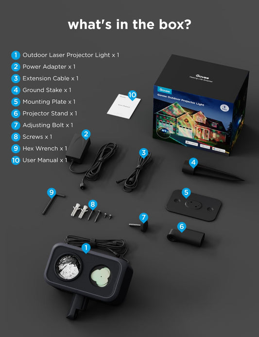 Govee Outdoor Projector Light, Laser and Aurora Star Projector Light for Indoor and Outdoor Decor, 16 RGB Patterns, RGBW Aurora, 51 Scene Modes, Works with Alexa, Google Assistant, Matter