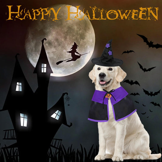 GOYOSWA Dog Halloween Costumes, Dog Witch Costume Halloween Dog Witch Cloak Cape Wizard Hat Halloween Costumes for Small Medium Large Dogs Pets (Large)