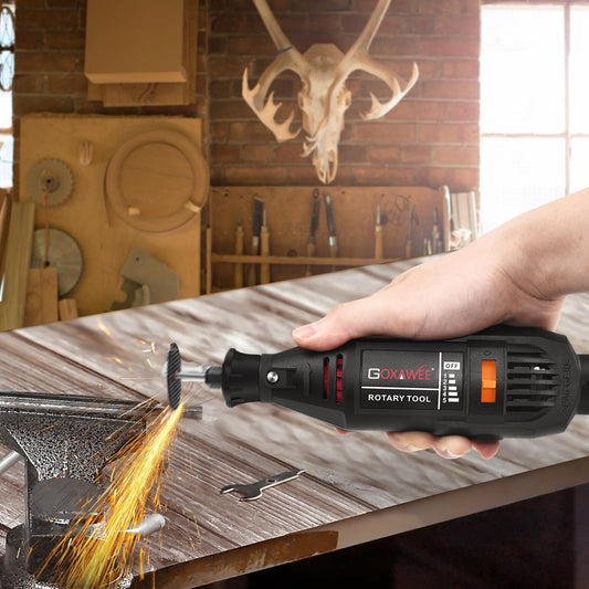GOXAWEE Rotary Tool Kit with MultiPro Keyless Chuck and Flex Shaft -140pcs Accessories Variable Speed Electric Drill Set for Handmade Crafting Projects and DIY Creations