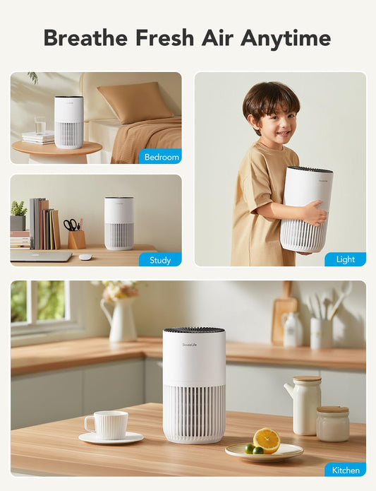 GoveeLife Mini Air Purifier for Bedroom, HEPA Smart Filter Air Purifier with App Alexa Control for Pet Hair, Odors, Pollen, Smoke, Portable Air Cleaner with 3 Speeds, 2 Modes, Timer, Aroma for Home