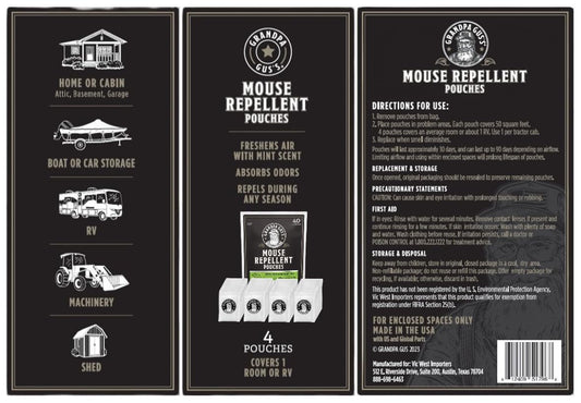 Grandpa Gus's Natural Mouse Repellent Pouches, Cinnamon/Peppermint Oils Repel Mice from Nesting & Freshen Air in Home/Cabin/Boat/Car/Storage/RV/Machinery/Shed, 1.75 Oz (40 Pouches)
