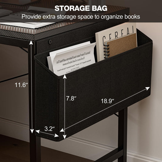 Grandder Gaming Desk 47 Inch with Power Outlet and LED Light, Computer Desk with Reversible Shelves and Storage Drawer, Pc Small Desk for Home Office Table with Bag, Carbon Fiber Black