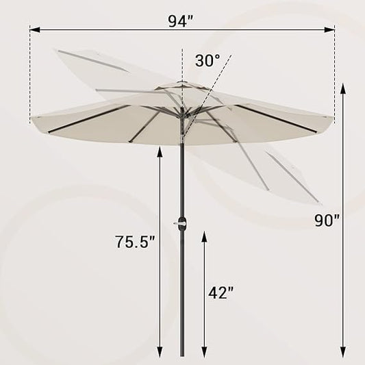Greesum 9FT Patio Umbrella with Push Button Tilt and Crank, Outdoor Table Umbrella with 8 Sturdy Ribs, Market Table Parasol for Garden, Lawn, Backyard & Pool, Without Base, Beige