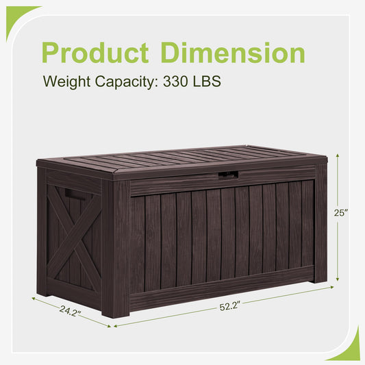 Greesum 120 Gallon Deck Box, Resin Outdoor Storage Container for Patio Furniture, Garden Tools, Pool Accessories, Weatherproof, Lockable, Brown