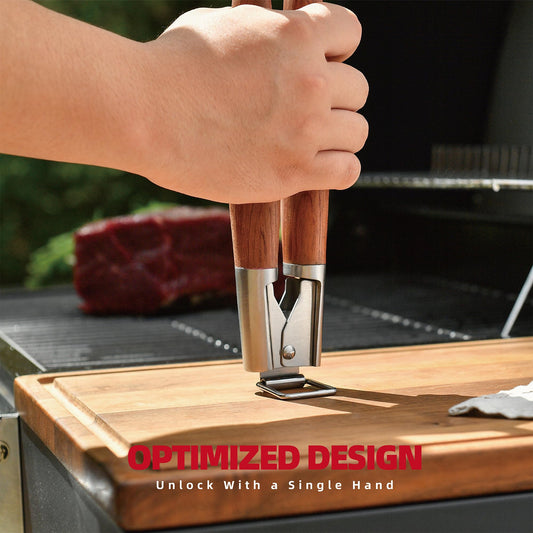 GRILAZ Heavy-Duty Rose Wooden BBQ Grilling Tools Set. Extra Thick Stainless Steel Multi-Function Spatula, Fork & Tongs | Essential Accessories for Barbecue & Grill. Ideal Gift for Father…