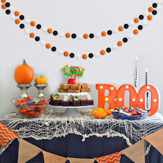 60 Balls Halloween Felt Ball Garlands - Halloween Decorations - Black Orange White Pom Pom Garlands for Home Tree Festive Indoor Outdoor Home Office Hanging Decor - 25mm