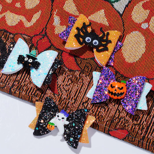 Haakong 8Pcs Halloween Hair Accessories Headdress Halloween Glitter Bows Spider Hair Clip Pumpkin Hair Bow Ghost Hair Barrette Glitter Hair Clip Girls Party Dance Hair Barrettes