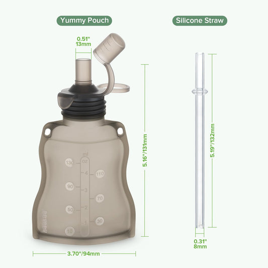 Haakaa Yummy Pouch Reusable Baby Food Pouch, Baby Food Storage Kids Squeezable Pouch, Washable Freezer - Make Homemade Organic Food for Babies/Toddlers, 4oz, 2 Pack,6m+