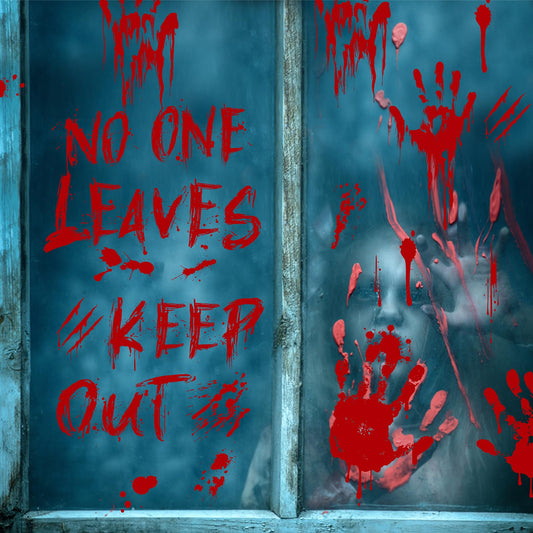 Halloween Bloody Handprint Footprint Window Stickers Wall Stickers for Halloween Party Decorations Inside Outside Decor Come with Plastic Scraper Tools