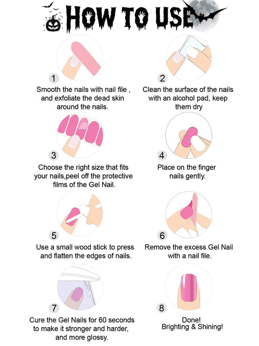 Halloween Cured Gel Nail Polish Strips, TOROKOM 20 Stickers Halloween Gel Nail Polish Stickers Full Wraps Nail Art Stickers Bat Spider Net Face Gel Stickers with Nail File and Stick