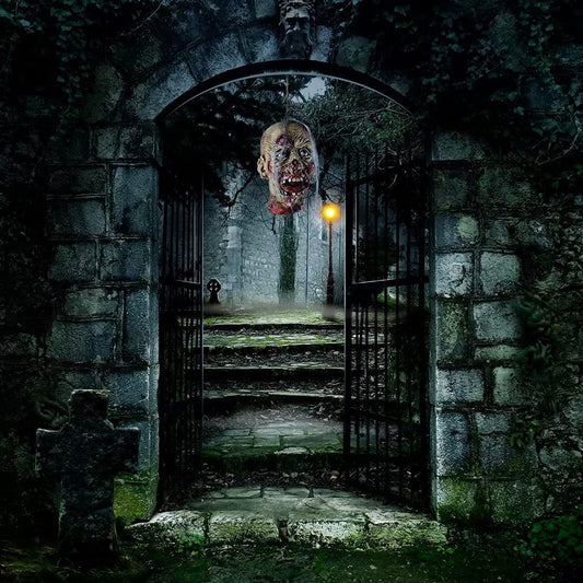 Halloween Decoration Props, Scary Hanging Severed Head Life-Size Bloody Latex Zombie Head for Haunted House Halloween Party Yard Bar Decor