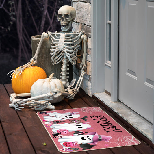 Halloween Doormat Cute Ghosts Door Mat Pink Non-Slip Indoor Outdoor Floor Rug Fall Halloween Holiday Spooky Entryway Decoration for Home, Party & Porch, 17 x 29 Inch