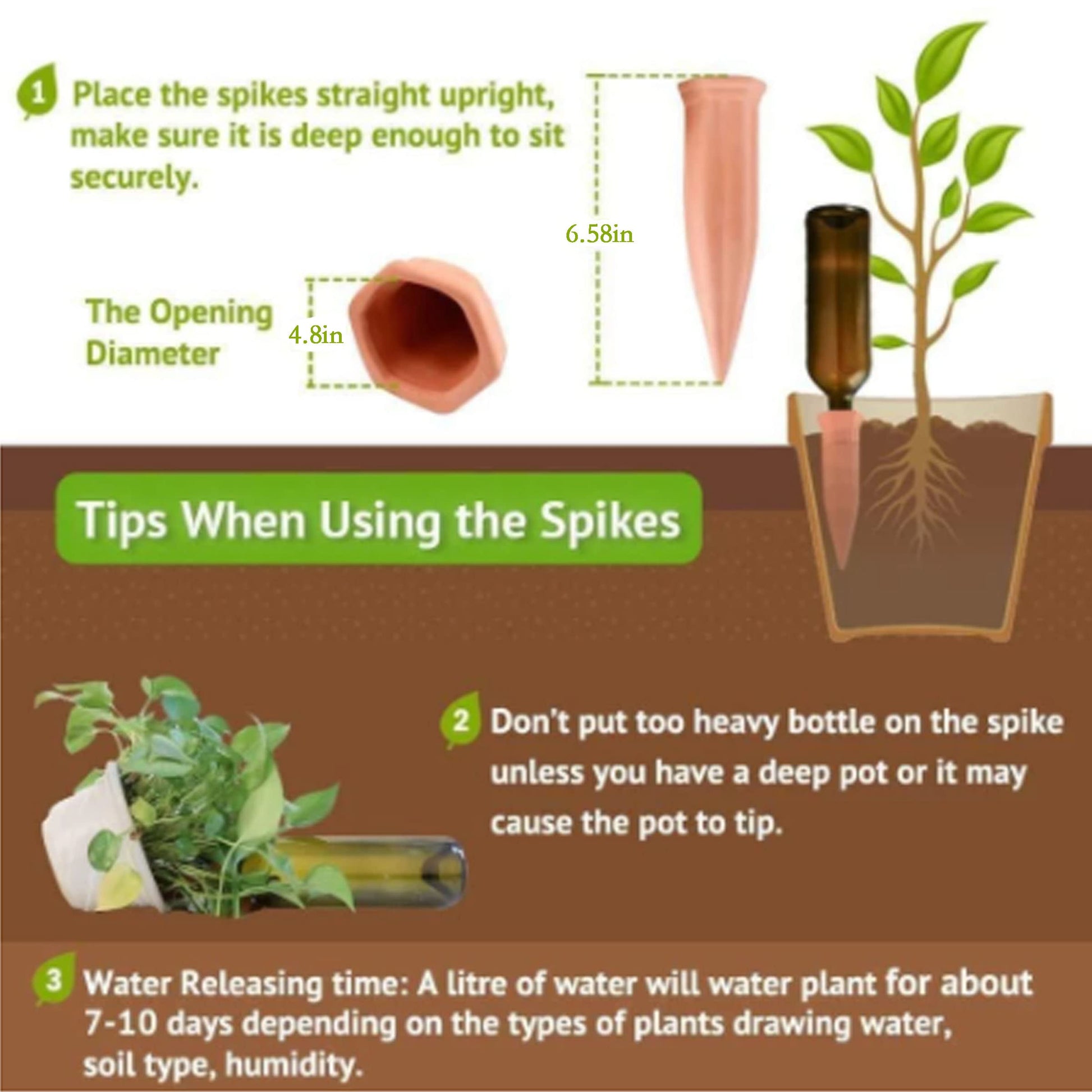 Important tips for using holiday plant waterers The watering pile is made of clay, which is a bit fragile due to its composition. You will most likely receive spoiled spikes. Please understand this fact and don't be angry about it. Please