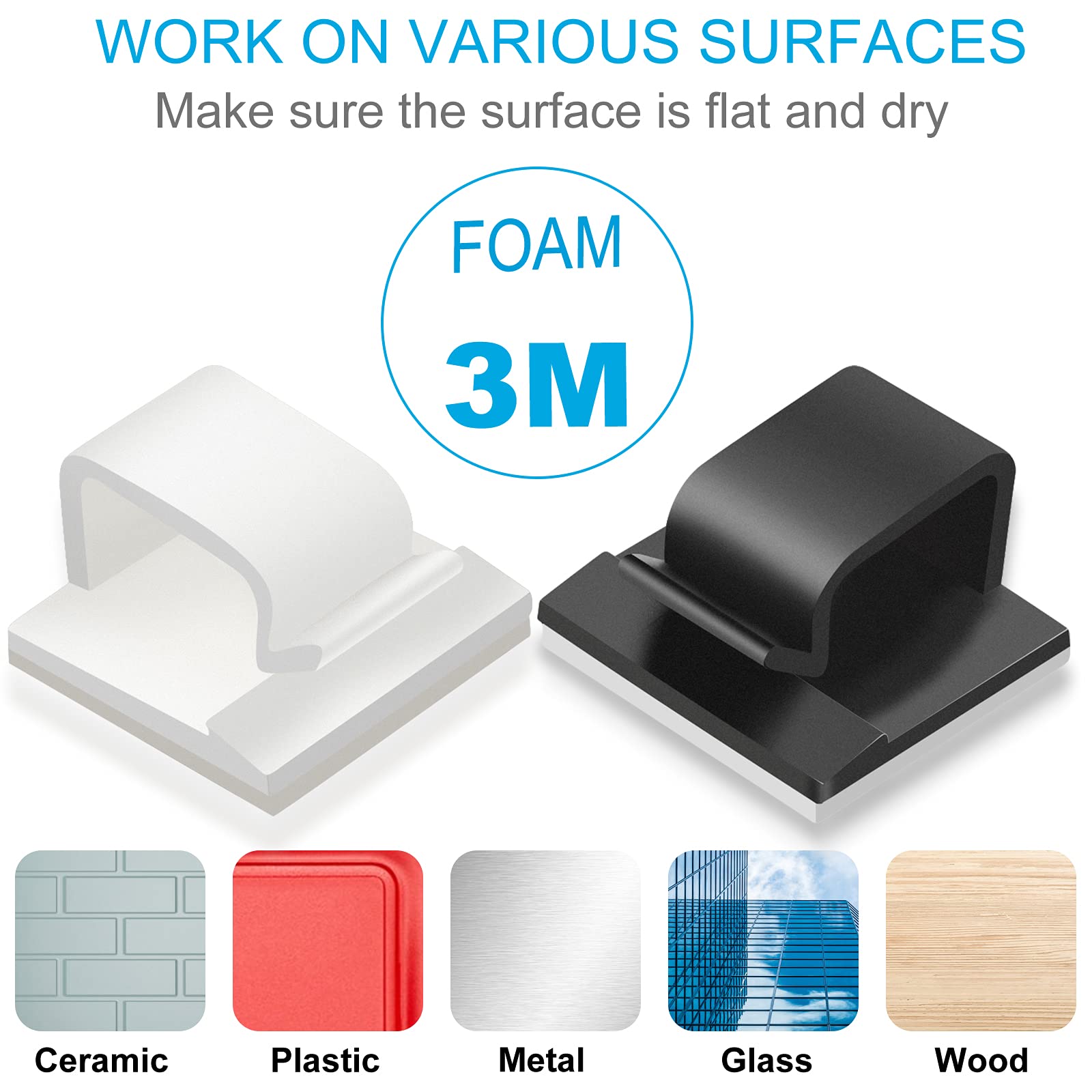 • Strong Adhesive: Those cable management clips have a upgraded sticky adhesive that can firmly hold cables, wires, and cords in place, remove without any residues and damage. Work great on plastic, metal, glass, wood surface.