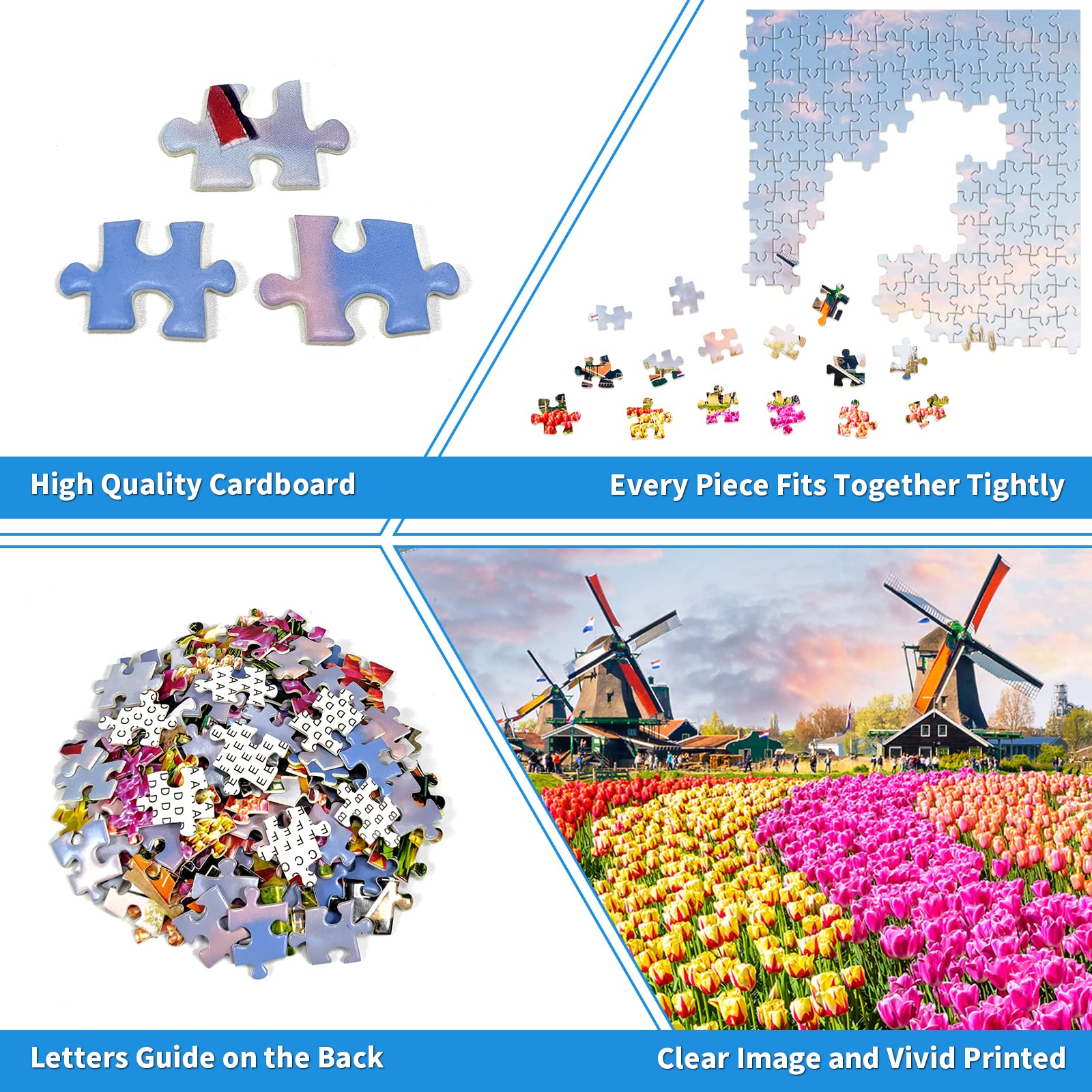 1000 Piece Puzzle for Adults Dutch Windmill Puzzle 1000 Piece Tulip Fields Puzzles Tulips Flowers Jigsaw Puzzles 1000 Pieces Holland Spectacular Flower Fields Landscape Puzzles