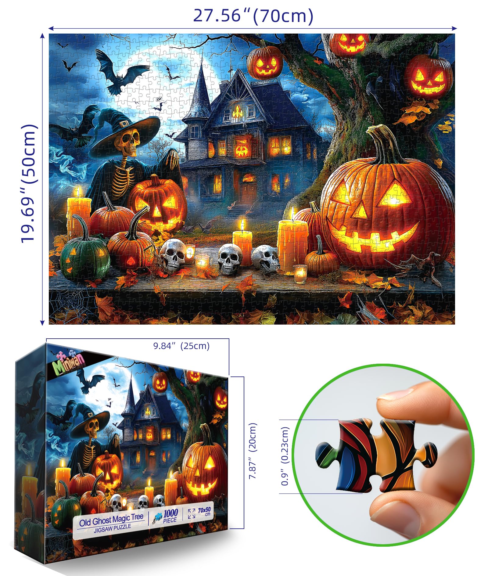 • High Precision Quality:Crafted from eco-friendly materials, our jigsaw puzzles ensure a safe and enjoyable experience for everyone aged 14 and above. The high-precision cutting means each piece fits seamlessly, preventing frustration while you piece together the enchanting Halloween scene. You'll appreciate how easy it is to store and display your completed artwork, making it a fantastic addition to your home decor
