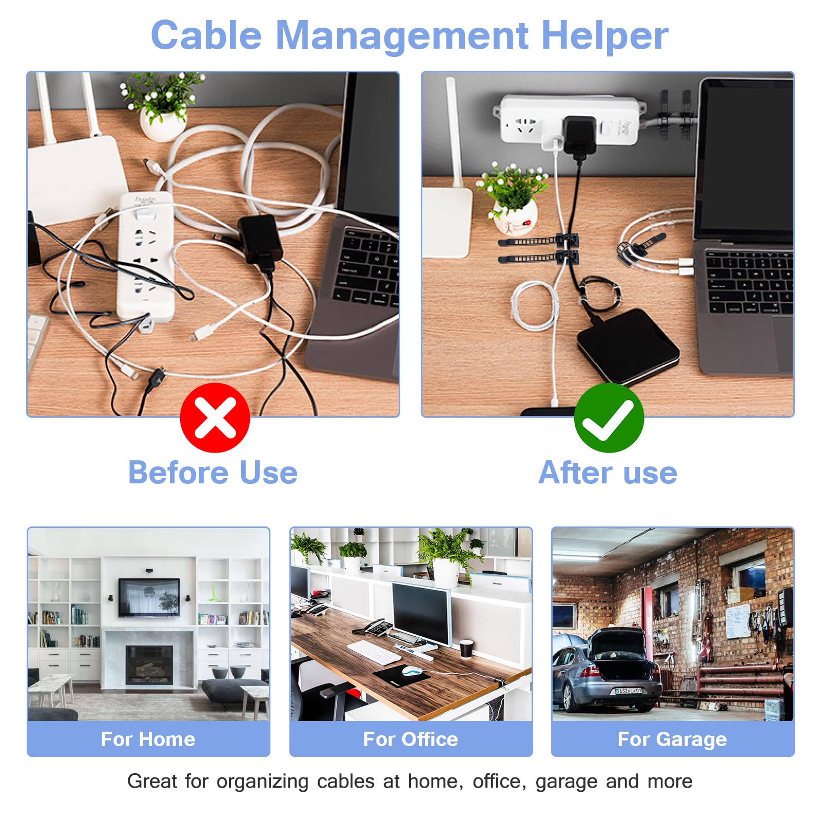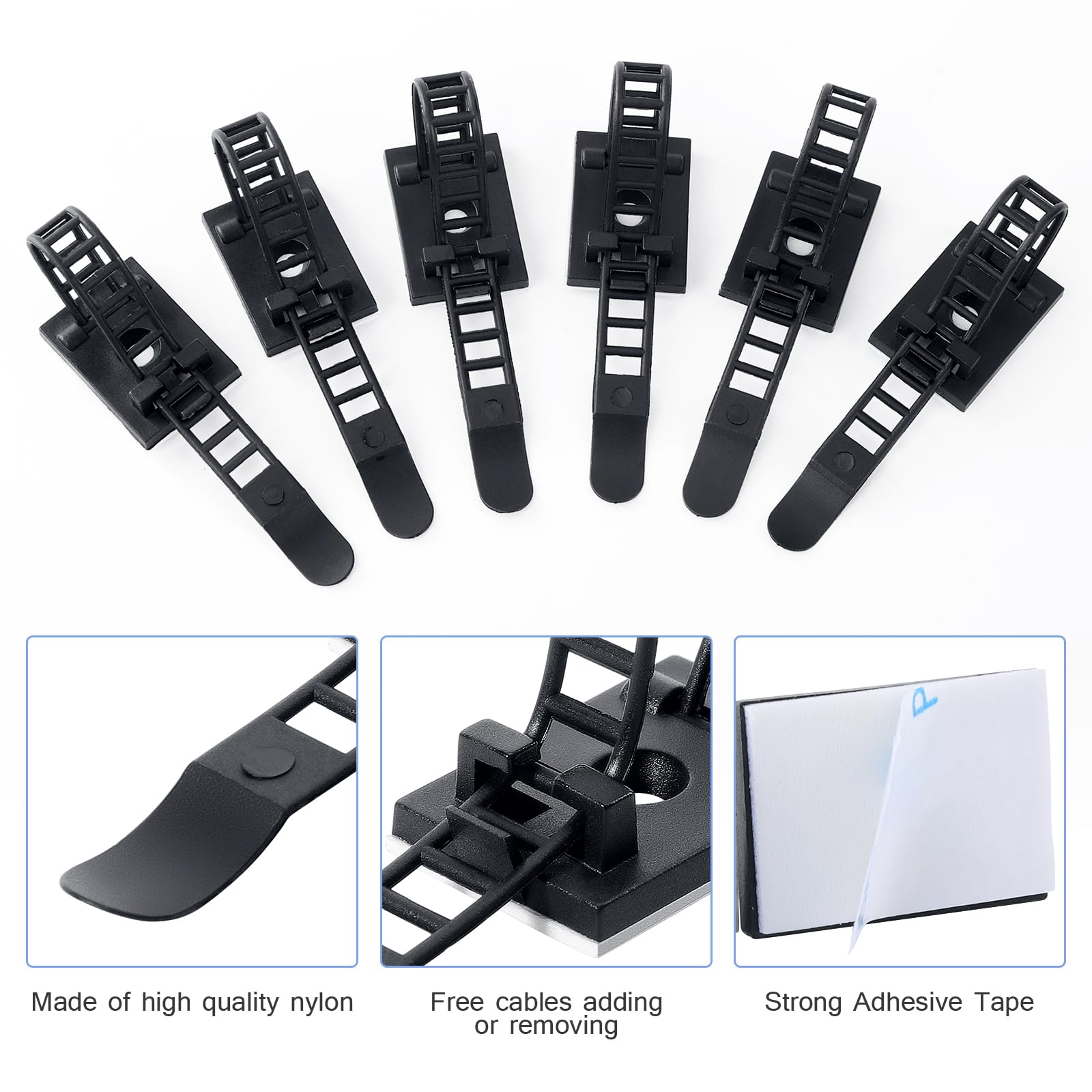 • Adjustable Adhesive Cable Ties: With adjustable design, the adhesive cable ties clips can meet your needs for organizing different sizes cable. You can adding or removing cables easily without any other tools. Great for cable management under desk