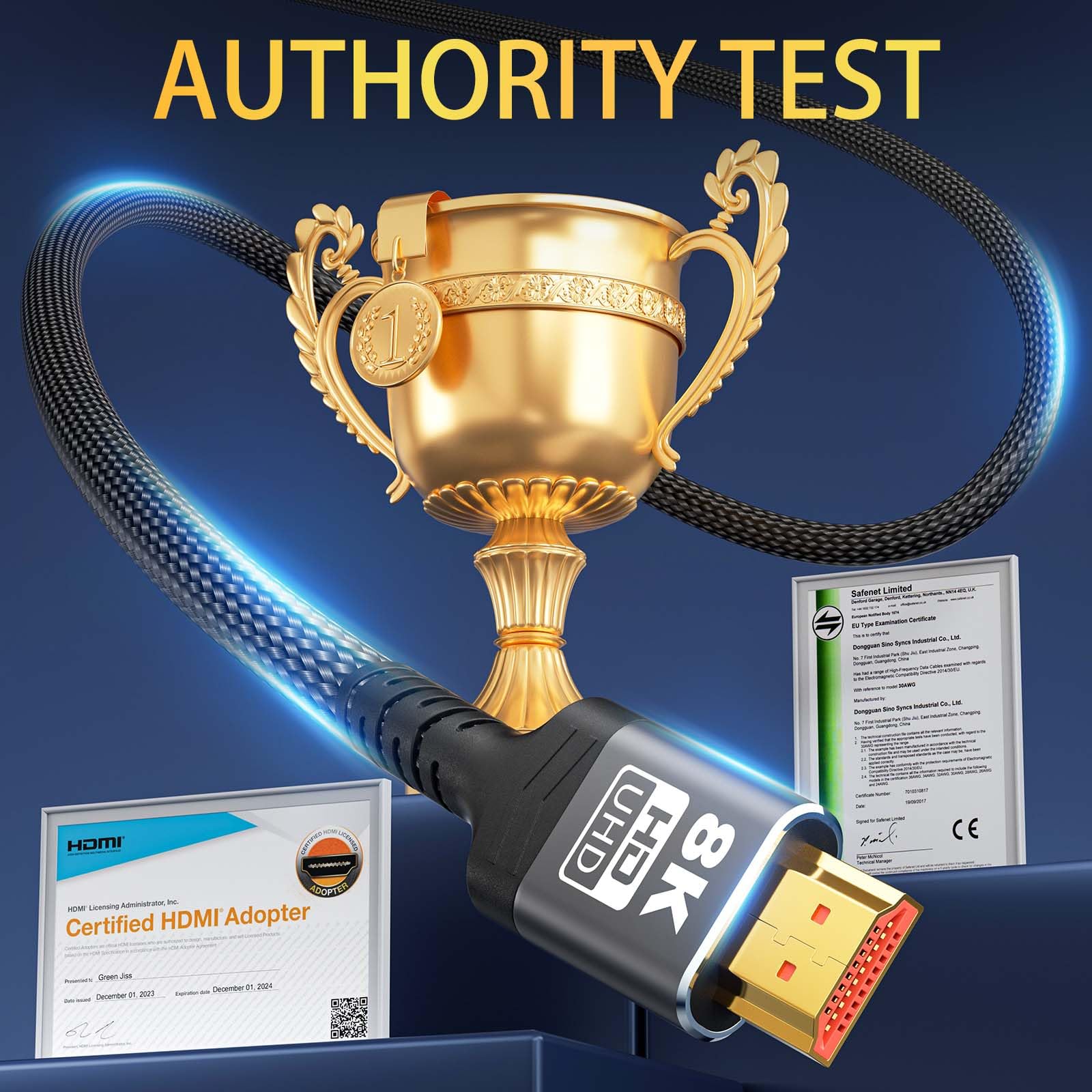 • ๐Ÿš€[Strict Quality Control] Green Jiss HDMI 8K cables are manufactured with strict quality control standards. Every cable and even every part has been put through rigorous testing. We've combined every flawless part into a perfect 8K HDMI cable. Then pass the performance tests in the laboratory and present them to you after passing the exam.