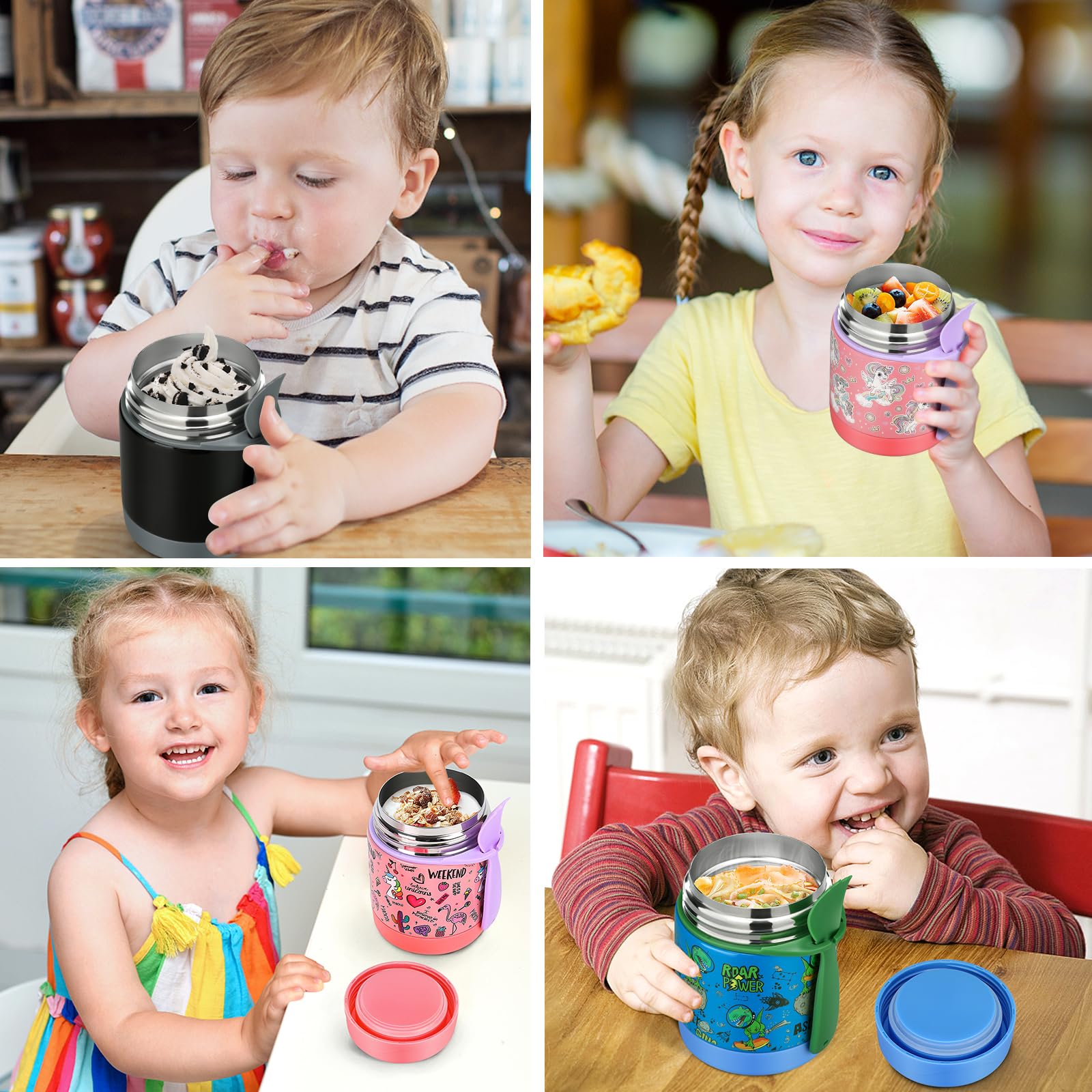 • Leak Proof Design: Feel confident that our leak-proof food jars will fit in your lunch bag without worrying about spilling messes. The insulated thermo food jar comes with a food-grade spoon for your child's convenience.