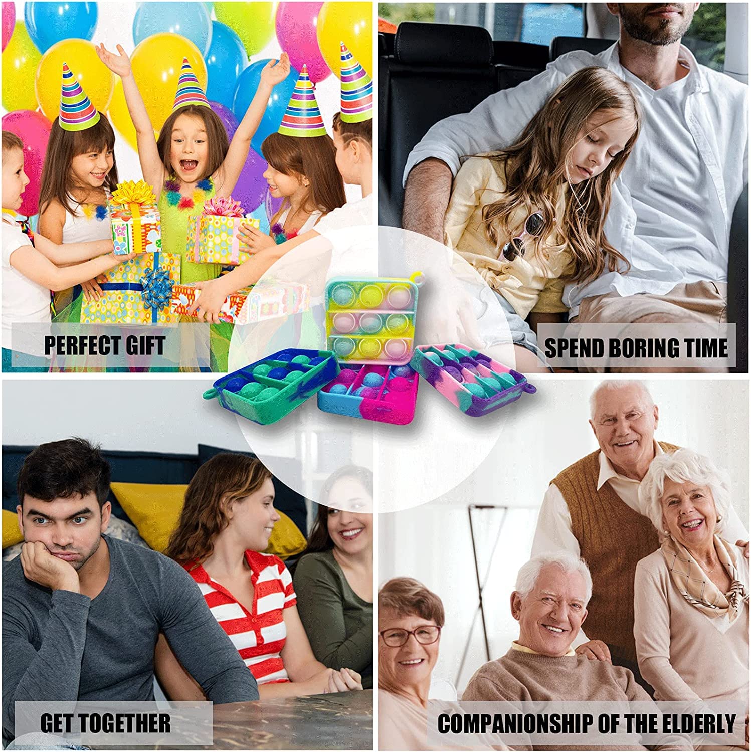 • 【Entertainment and Stress Relief】: These mini pop pack toys are great for everyone. For kids, this mini pop bulk can improve the ability of calculation and thinking. For adults, relieve stress and keep the brain active, prevent the degeneration. It's a good helper to relieve anxiety. By squeezing our silicone bubble keychain, you can get mental comfort and emotional release.