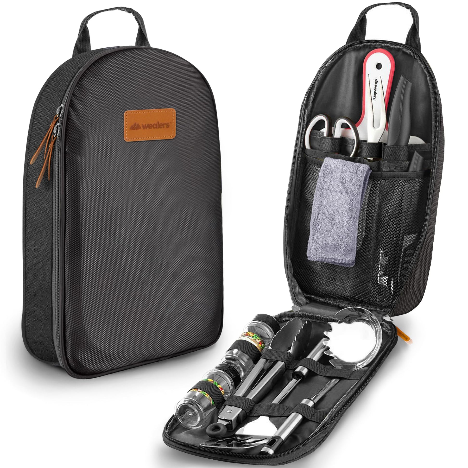 • COMPACT-ABILITY: Neatly organizes and holds your utensils in one convenient place. Each utensil has its own designated pouch, so units don’t get smeared, scratched or damaged in storage or in transit. Provides easy access to your cooking utensils and it is equipped with a secure zip seal.