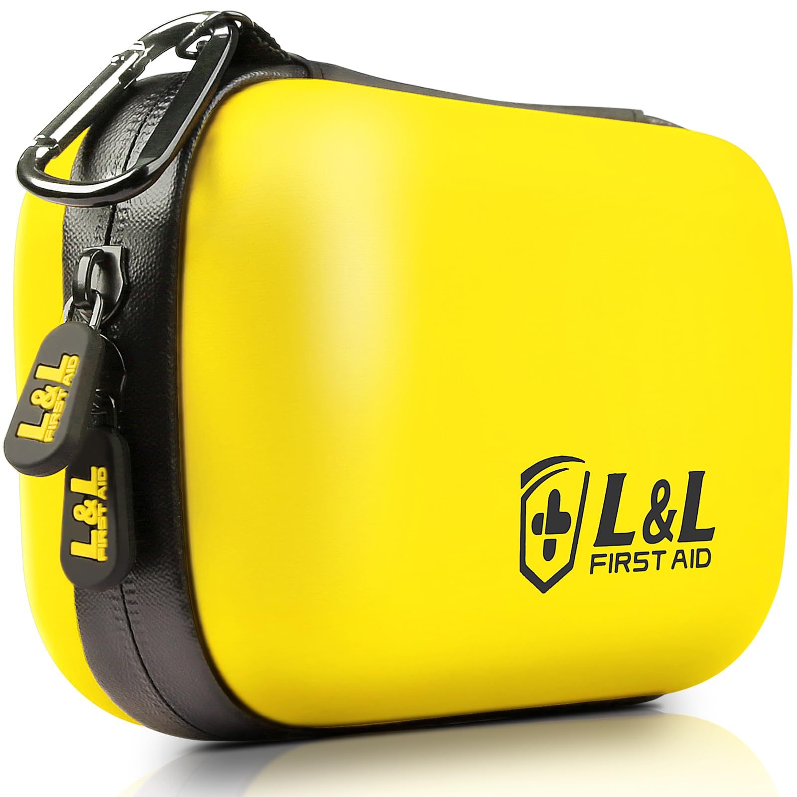 120-Piece First Aid Kit for Travel,Car & Emergency Survival - Compact Waterproof Medical Supplies with Trauma Bandages,Burn Gel & Fever Cooling Patch | Portable for Camping,Hiking,Sports(Yellow)
