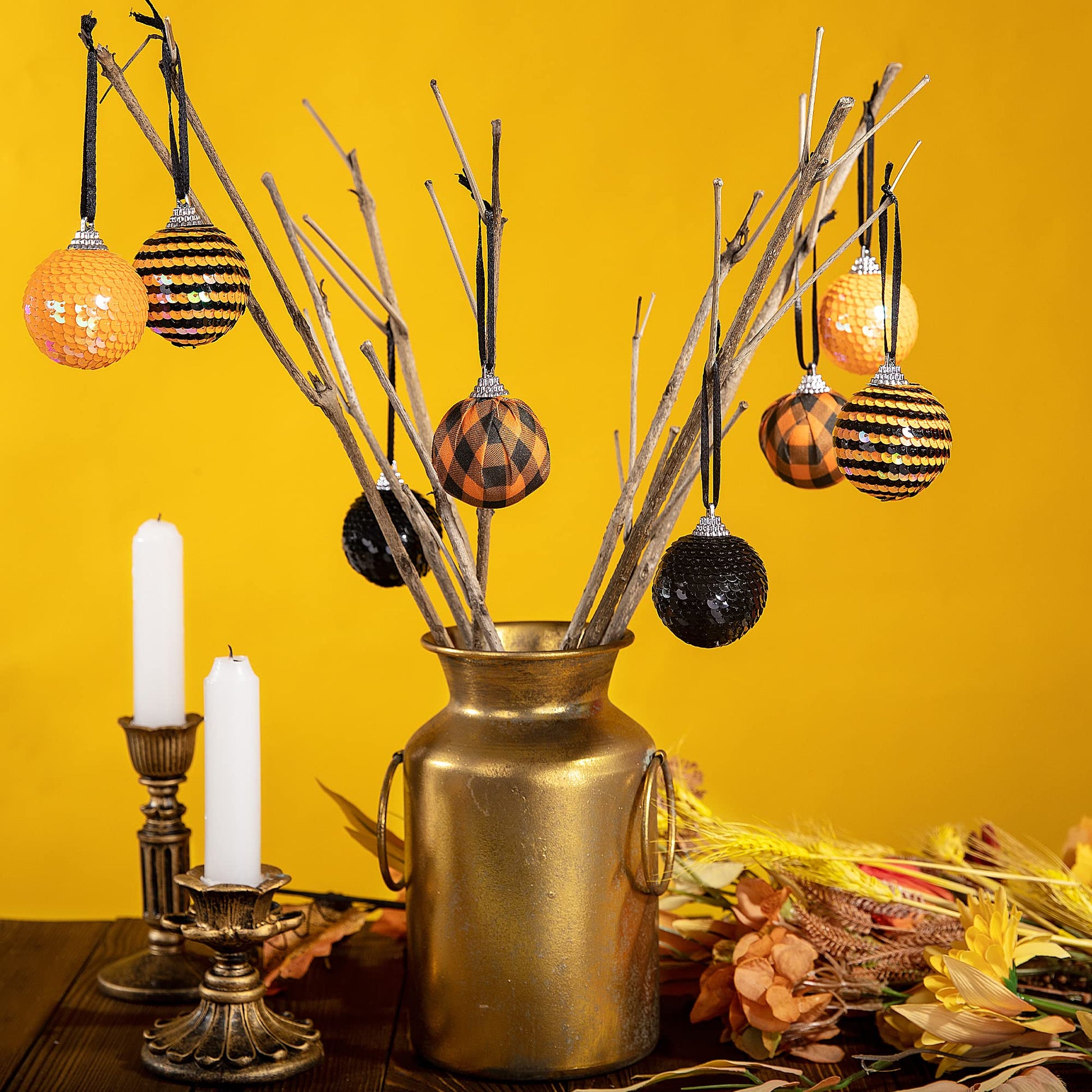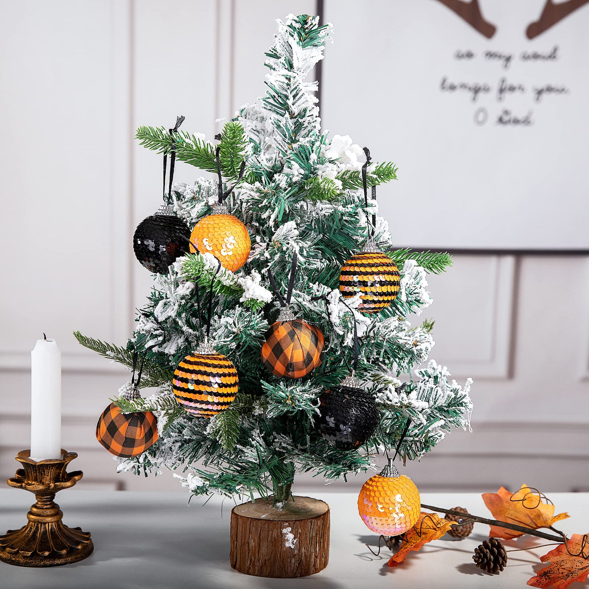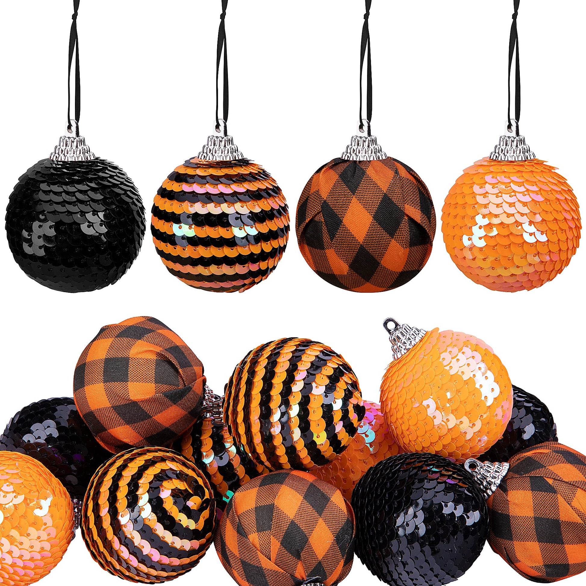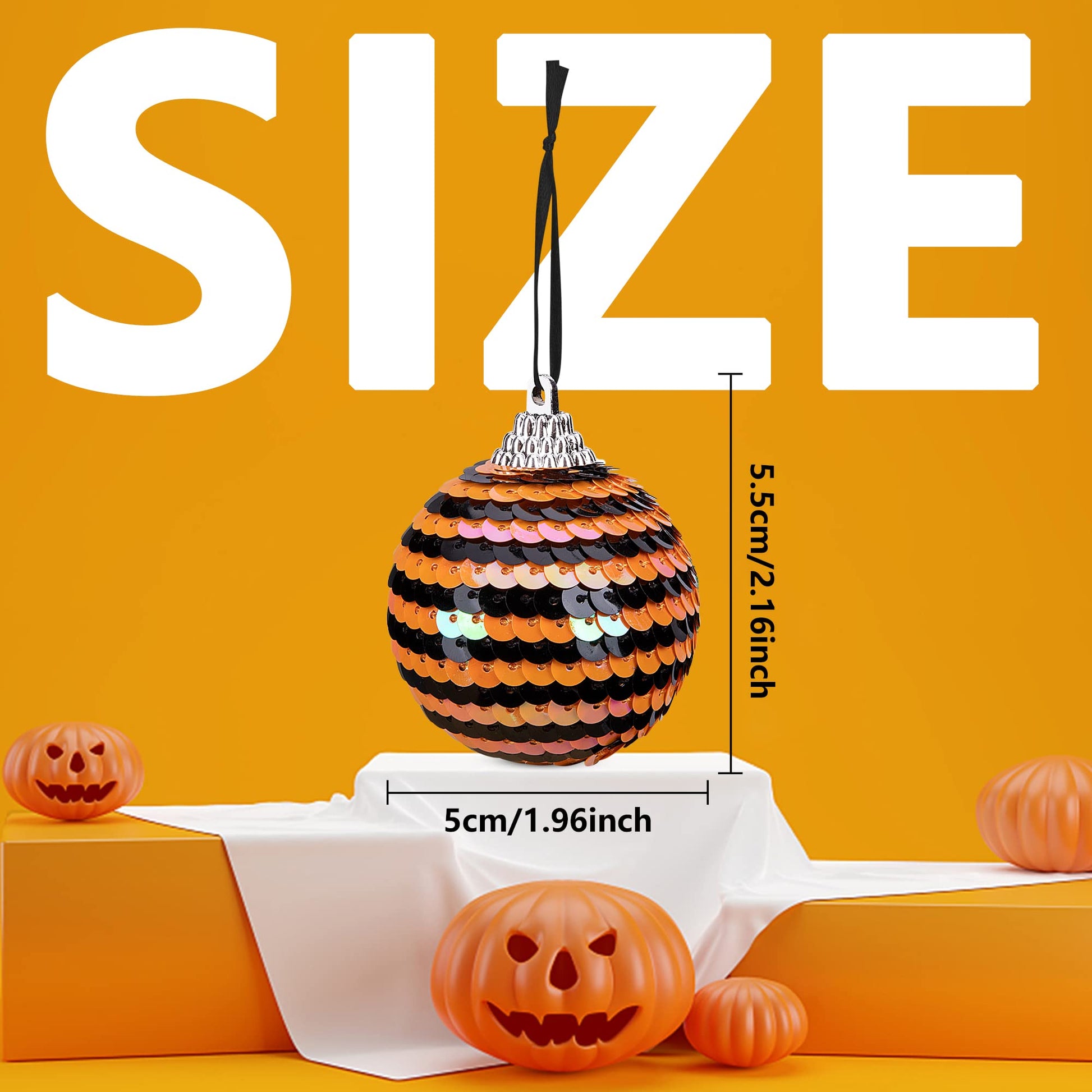 12pcs Halloween Ball Ornaments - 2" Halloween Sequin Hanging Ball - Scary Halloweens Theme Hanging Balls for Wreath Ornaments and Party Decoration