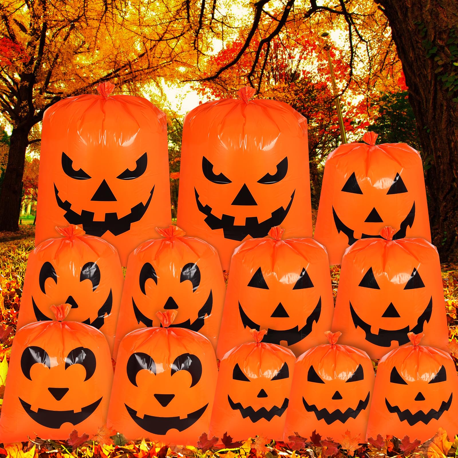• 🎃【Durable Thicker Halloween Leaf Bags】Our Halloween pumpkin decoration bags are made of premium plastic material, non-toxic, which is very safe for you and kids to use. Thicker than others, you don’t need to worry about rips and tears, durable and reusable for next years. Perfect to decorate your lawn, front door, porch, backyard.