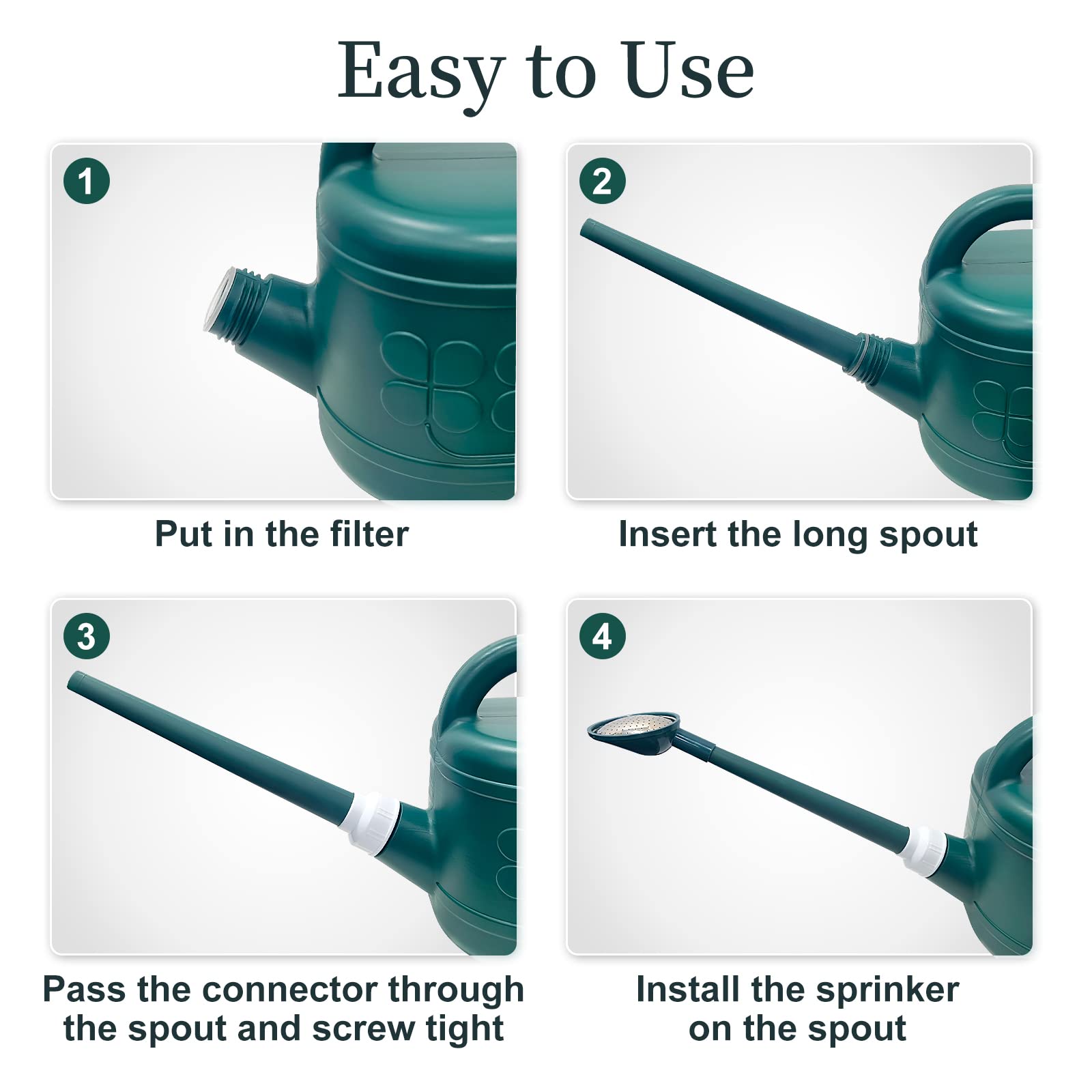 • [PRECISE WATERING, WATERING FLOWERS WITHOUT WORRY]-Plant watering can has a removable long spout, easy to carry and store, when installing, pass the connector through the spout and screw tight, seals well with no leak. Long spout watering can easy to reach distant plants, watering easily without bending over or tilting it too much, it easy to control the overall water flow, directing water exactly where it is needed, allowing every part of the plant to fully absorb the water.