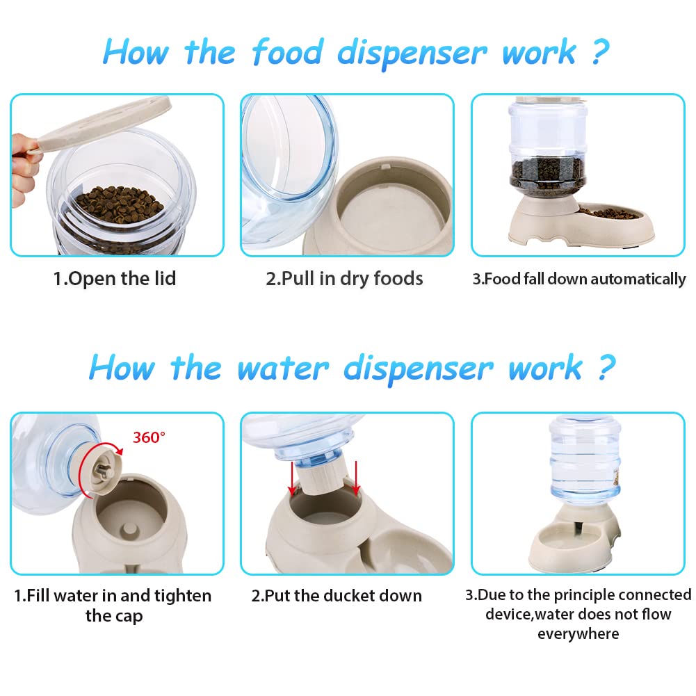 • AUTOMATIC CAT FEEDER SET: Cat food dispenser dry food as pets empty the bowl, prolonging time between refills.Side cut-out handles along base for easy lifting; non-skid rubber feet,deal for cats or dogs in single- or multiple-pet homes
