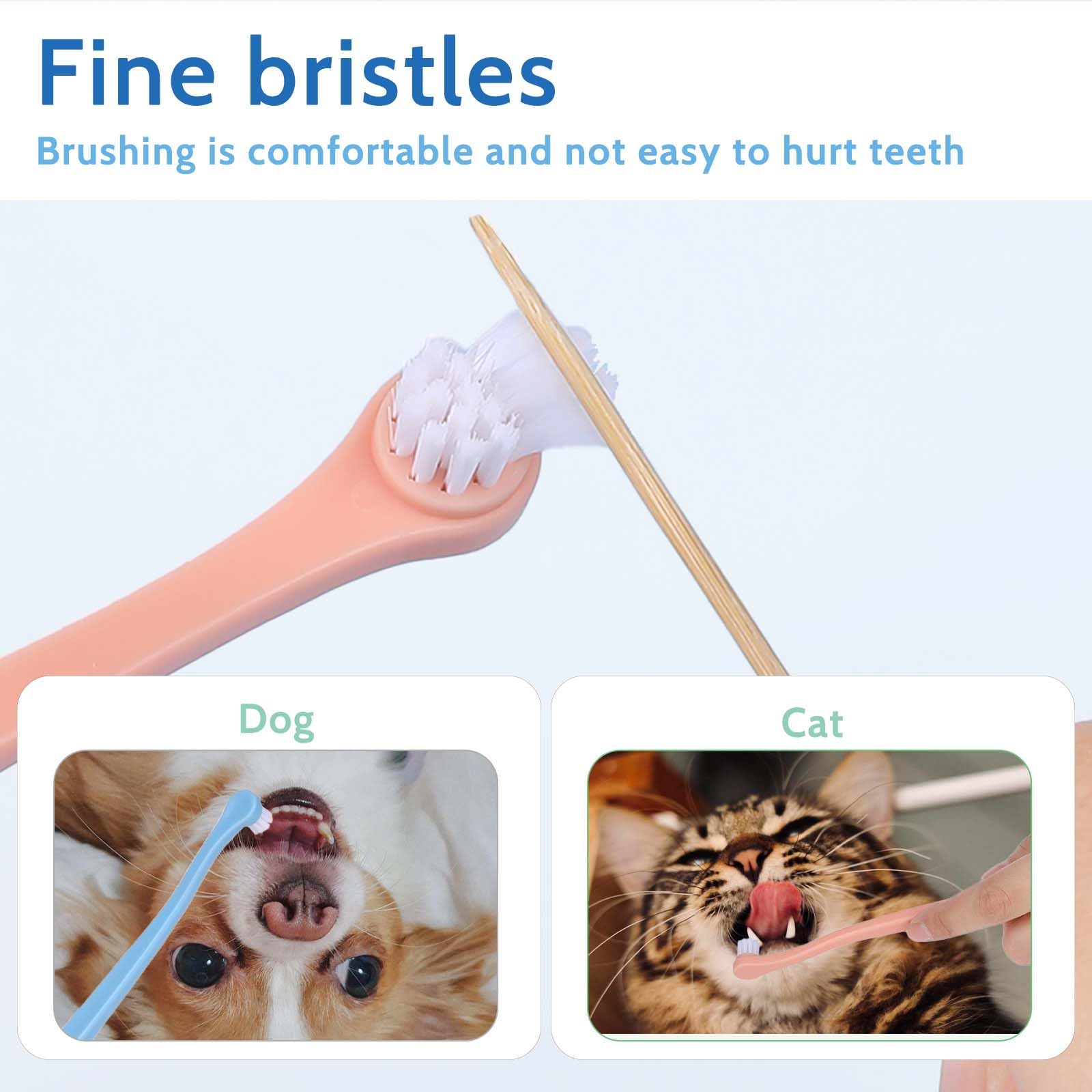 • Easy to use - The pet toothbrush is of convenient size and length, making your cleaning process hassle-free. Regularly using the cat cleaning toothbrush to care for your pet's teeth can deeply clean and restore their shine, providing a more comfortable experience for your pet.