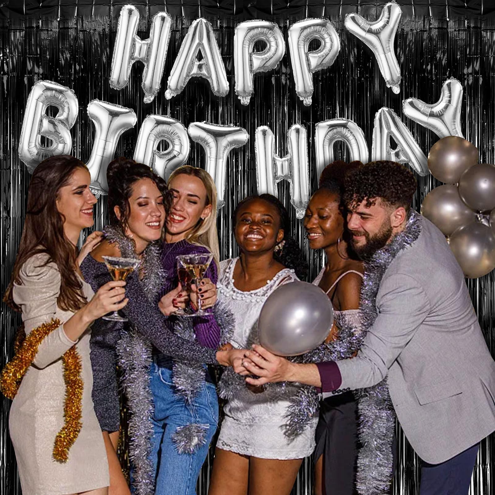 Details: 2 Pack Foil Curtain Backdrop Black Metallic Tinsel Foil Fringe Curtains Photo Booth Props for Birthday Wedding Engagement Baby Shower Bachelorette Christmas Holiday Celebration Party Decorations