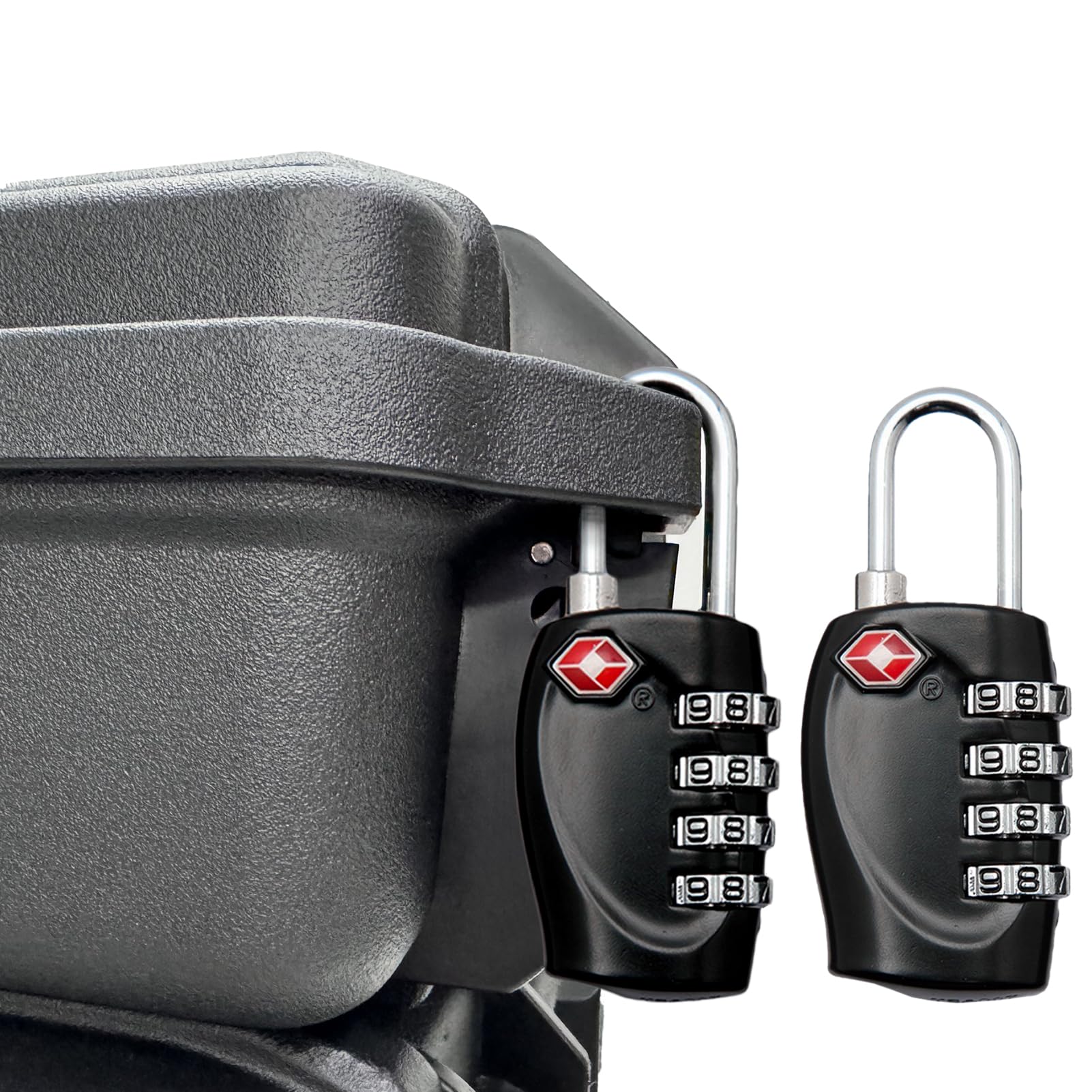 • TSA Approved: Compliant with TSA Key (KEY NOT INCLUDED). Padlock Dimensions: 1.2” (L)x0.52”(W)x 2.4”(H). Shackle Size: 0.7”(H)x0.12”(D)x0.4”(S). Our 2 pack TSA Approved gun case locks are recognized and accepted by the TSA, ensuring your belongings remain secure during security checks. The gun case locks are designed specifically for travelers. These 4 digit combination locks provide peace of mind as TSA agents can easily unlock them without damaging your luggage or the travel locks themselves.