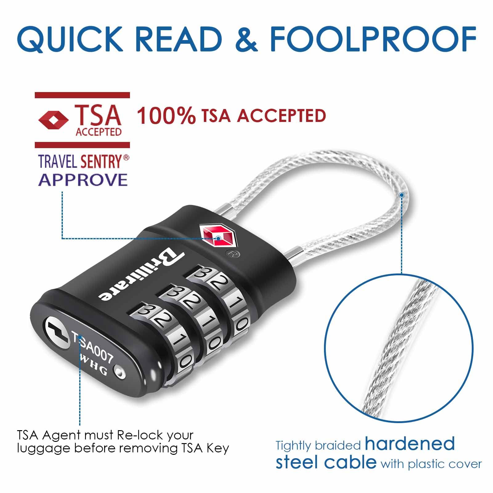 2 Pack TSA Approved Luggage Locks, Combination Travel Cable Lock, 3-Digit Waterproof Padlock, Zinc Alloy Outdoor Keyless Resettable Lock for Travel, Lockers, Bags, Backpack, Gym, Gate-by BRILLIRARE