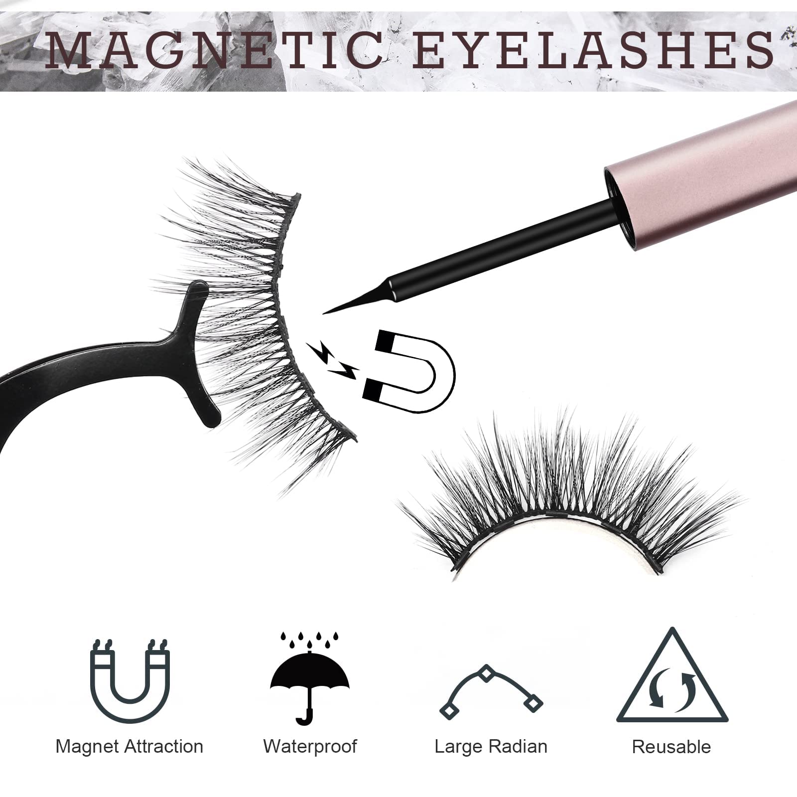 • 【MAGNETIC EYELASHES】:20 pairs different styles magnetic eyelashes can be reused, including natural ones, dense ones and long ones, which can meet your daily needs for all occasions. It is warped and light, will not add to the burden on the eyes. Very strong 3D effect can create a beautiful electric eye.