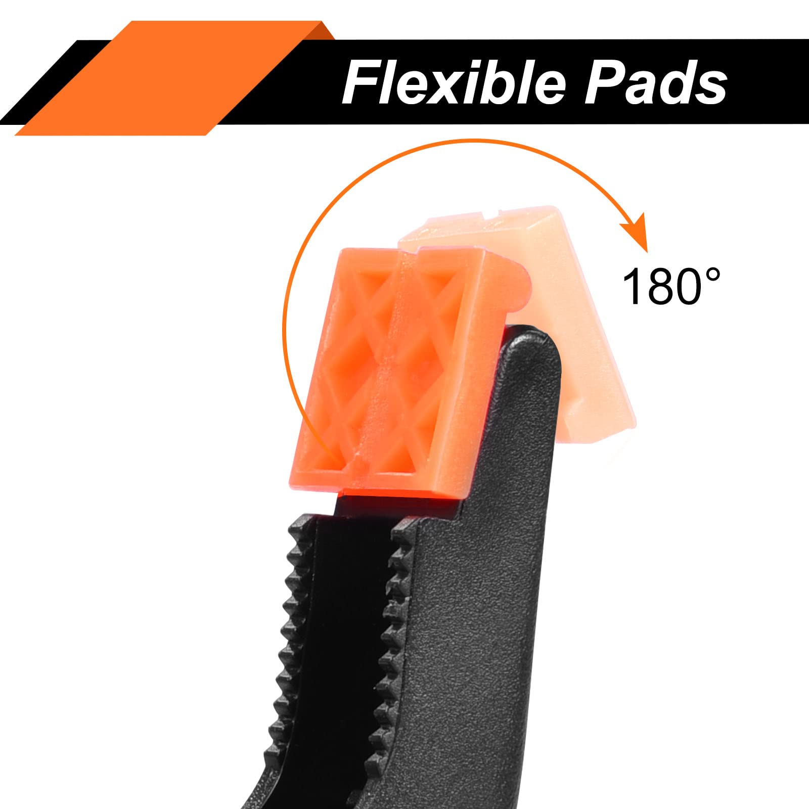 • Adjustable Jaw Pads: Wide pivoting jaw pads can be self-adjusted to uneven surfaces for a good match and solid grip, while it can also be removed anytime
