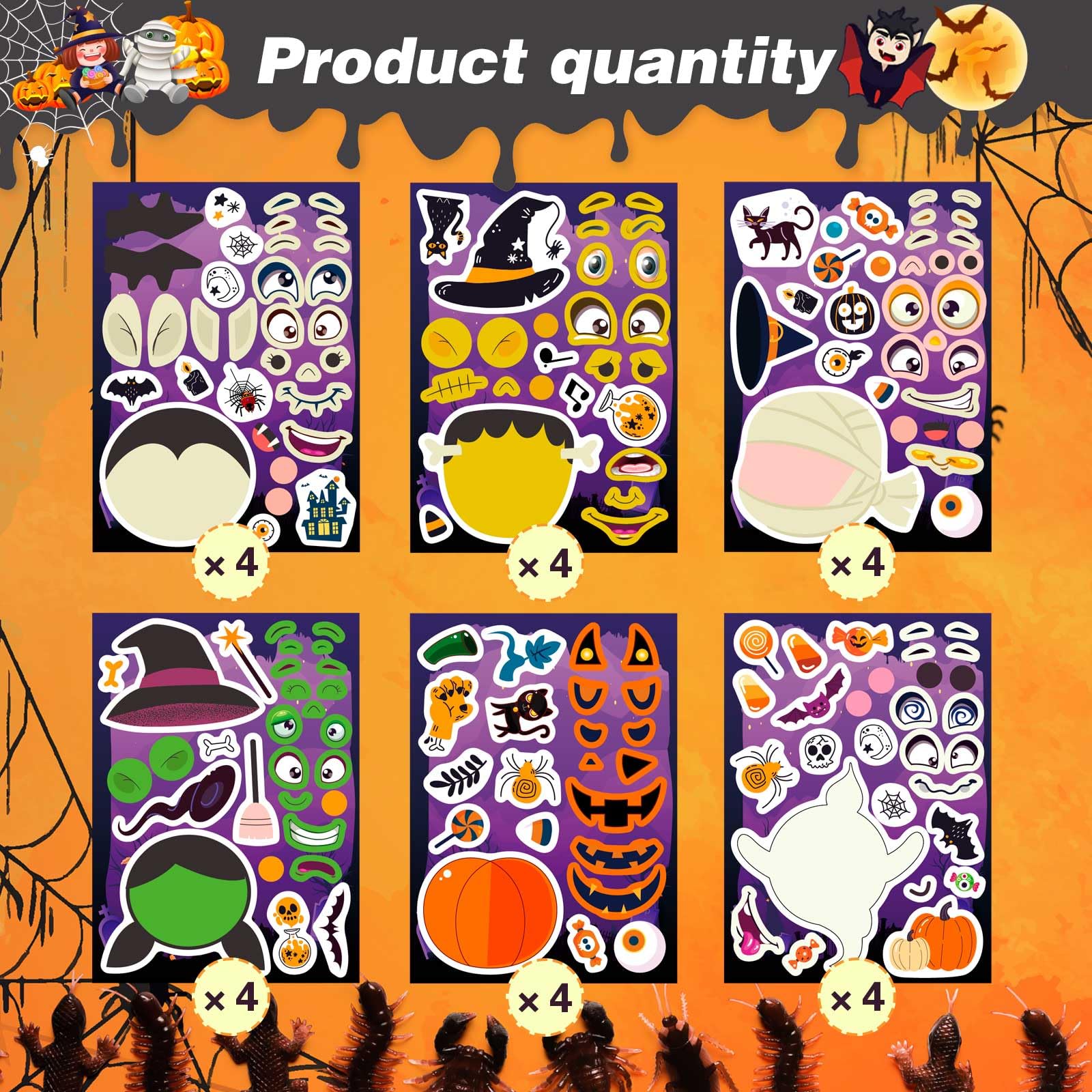24 PCS Make-a-face Halloween Sticker Make Your Own Halloween Character Mix and Match Sticker with Vampire, Witch, Mummies Zombies, Ghost and Pumpkin Trick or Treat Halloween Goodie Bag Fillers