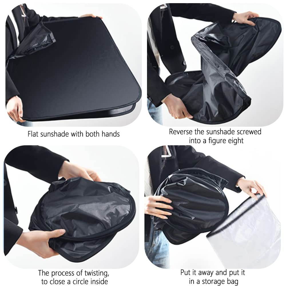 • 【FOLDABLE STORAGE】: The front windshield of the car sunshade is designed with 'memory steel ring' which can be twisted and folded freely, when you want to store it, just fold it up, twist it along the steel ring into an '8' shape and put it into the storage bag that comes with the product, it can be easily placed in the car door or passenger compartment.