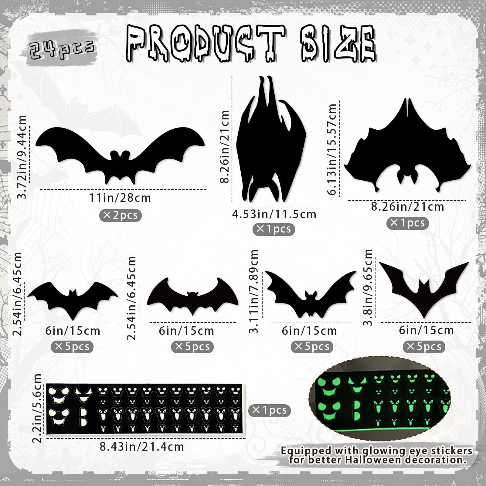 24pcs Halloween Decorations Outdoor Magnetic Bats for Garage Door Decorations with Glowing Eye Stickers Fridge Car Decor