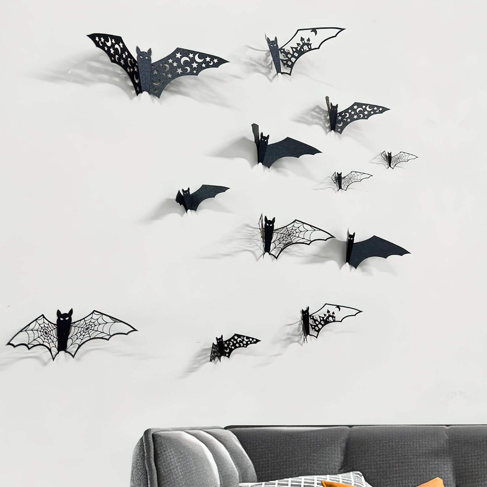 • Hollow out 3D Bats Design: Our bats feature a realistic 3D design that creates a chilling effect, adding a touch of frightful fun to your Halloween decorations. Watch as they appear to fly across your walls, instantly transforming any space into a haunted haven.