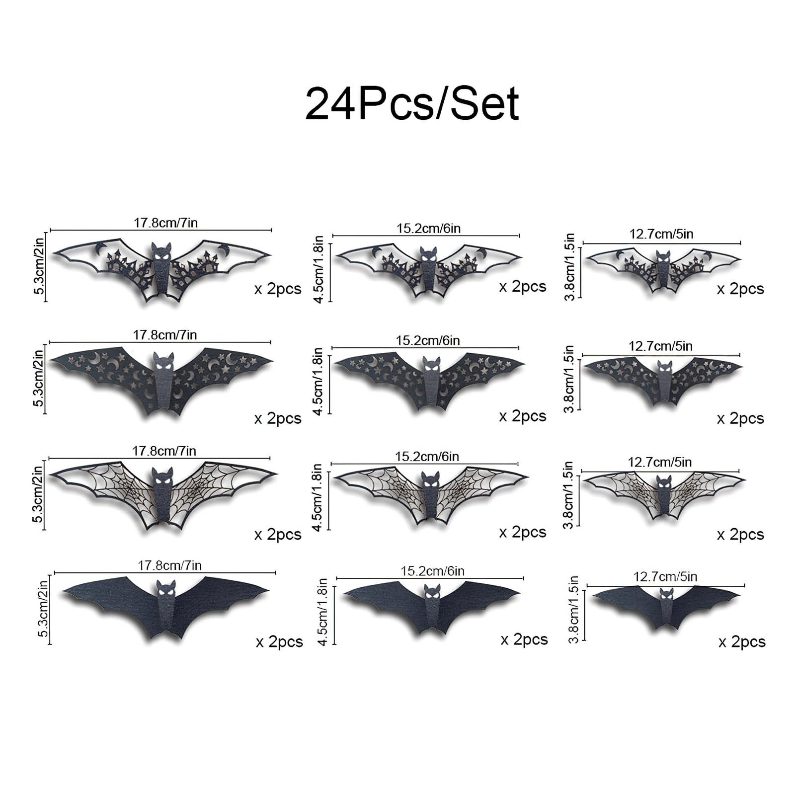 24Pcs Large Halloween Bats Decorations - 3D Self-Adhesive PVC Scary Wall Decor, Hollow Out Waterproof Black Stickers for Indoor Party Supplies, Door and Room Decals