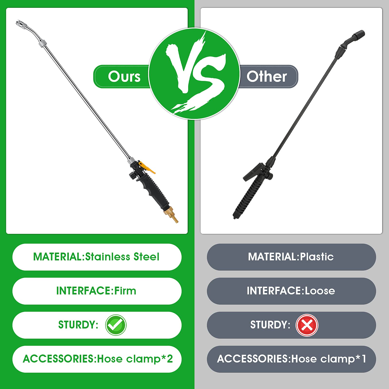 • [Stainless Steel Sprayer Wand]: Unlike plastic, our spray wands are primarily made of stainless steel, which is strong, durable, drop-resistant, and won't break.