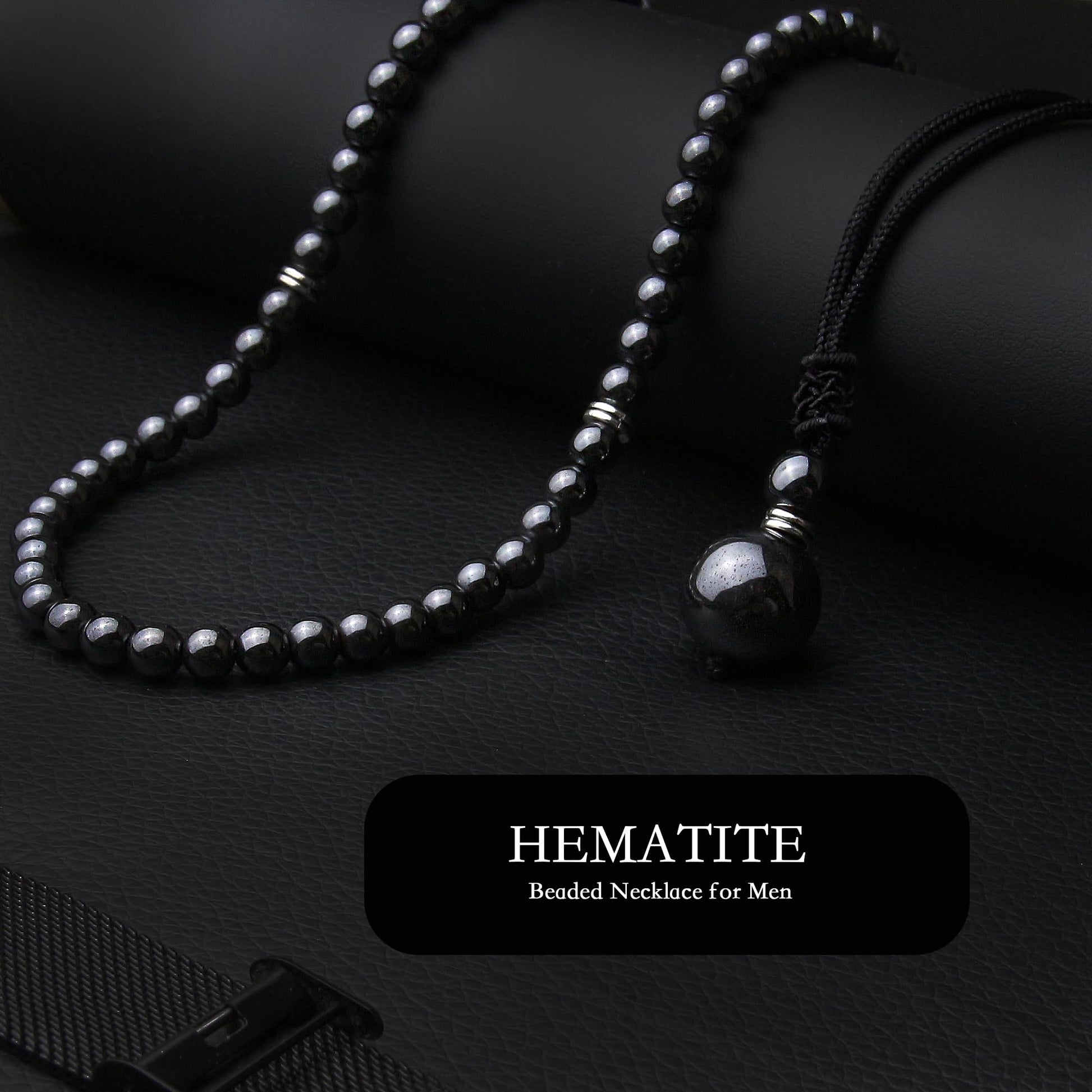 2Pcs Hematite Necklace - Beaded Necklace for Men - Protection Necklace Men Choker Necklaces Hematite Beads Pendant Jewelry Gifts for Men