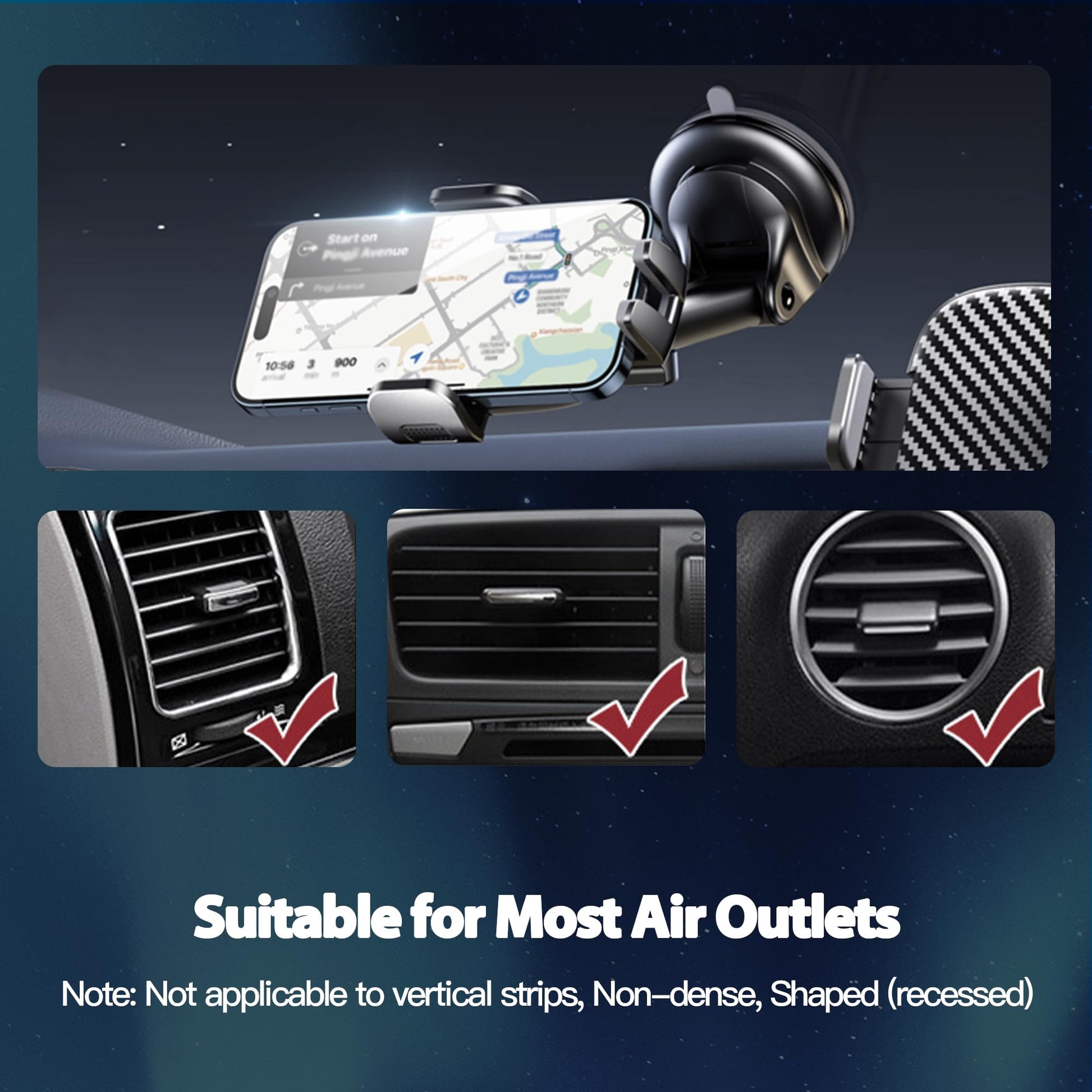 3-in-1 Car Phone Holder Mount Powerful Suction Phone Mount for Car Dashboard Air Vent Windshield,for All iPhone Android Phone (Black)
