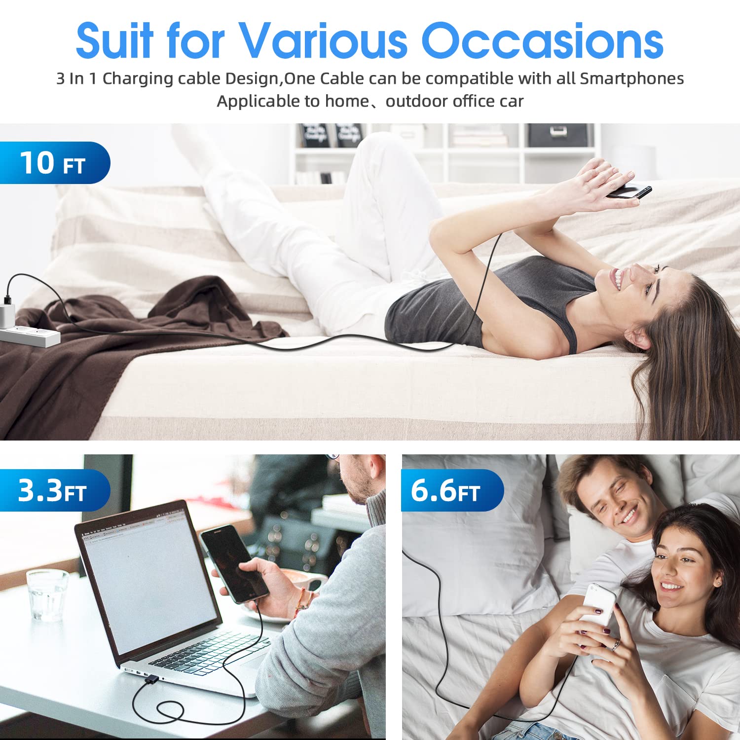 • 【Multiple Lengths】These magnetic USB C charging cables with different length combination (3ft,3ft,6ft,10ft,10ft) for a variety of occasions, Enjoy charging always and everywhere).The extra length cable 10FT magnetic phone chargers is perfect for you to couch to charge your device while using it for video or gaming.